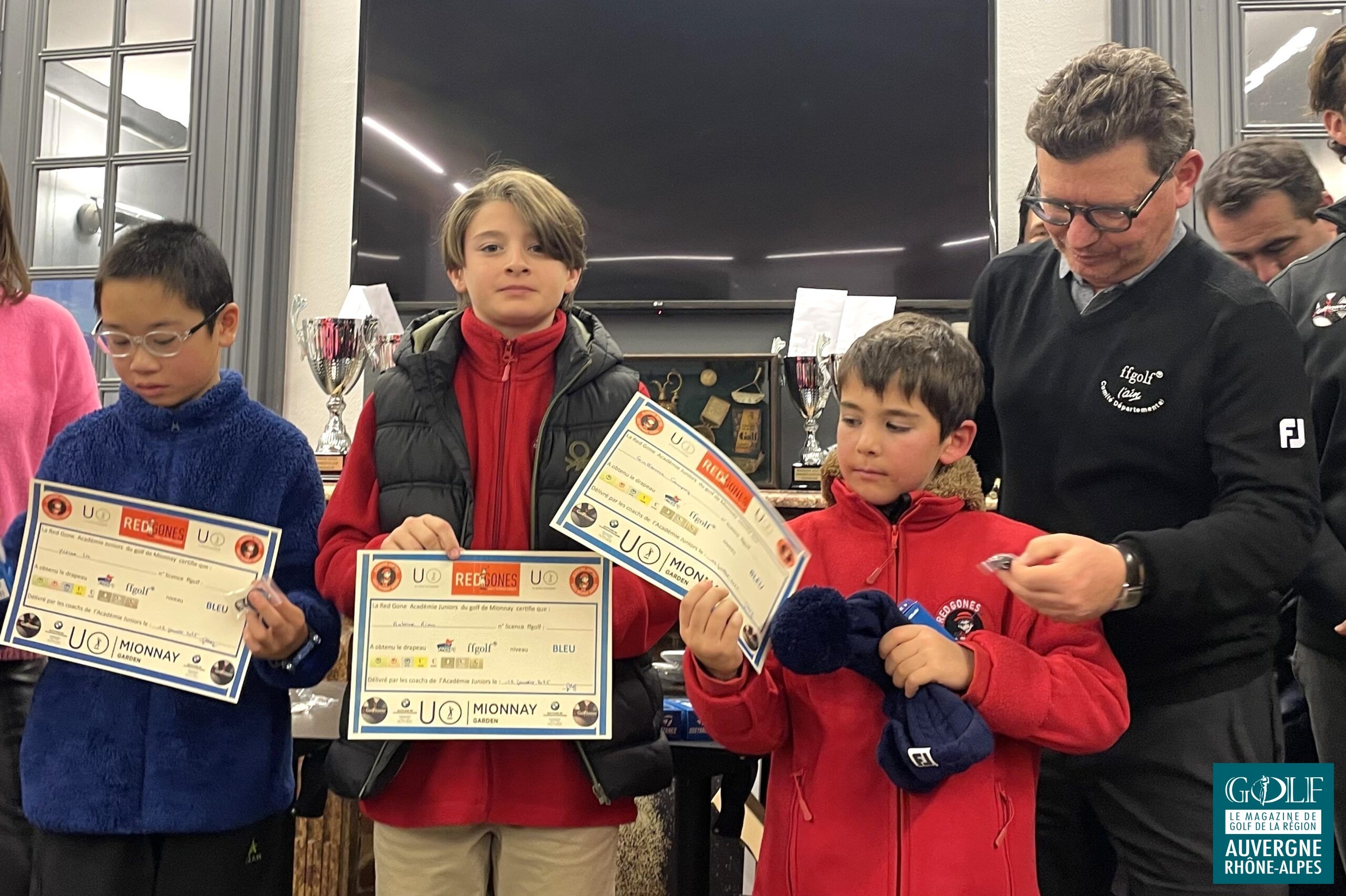 Une bien belle journée de partage et de transmission à l’image de « la politique de filière mise en place depuis plusieurs années à Mionnay » comme soulignera Renaud Gris. Ainsi, fin de matinée, 12 formations composées de deux académiciens, et emmenées par un pensionnaire du Renaud Gris Golf Institut (RGGI) se lançaient tour à tour, à l’assaut des greens pour un ludique scramble.