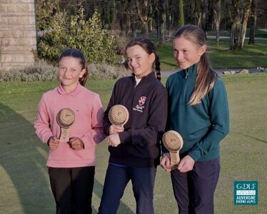 Disputé sur les Brocards au GC Lyon, cette épreuve recensant 95 compétiteurs (dont 23 filles) venus de toute la France, s’est achevée par un play-off chez les garçons où il fallut départager les deux meilleurs U12 du champ qui avaient rendu une remarquable carte totale de -4 sous le Par. Et Théophile Galle (Lyon Salvagny), très régulier (70, 70) a alors pris la mesure de William Harran (Evian Resort GC) pourtant auteur de la meilleure carte du jour (68, -4). Cayssi Dunlop (UGolf Trois Vallons) complète le podium grâce à son excellent score dominical (69, -3).