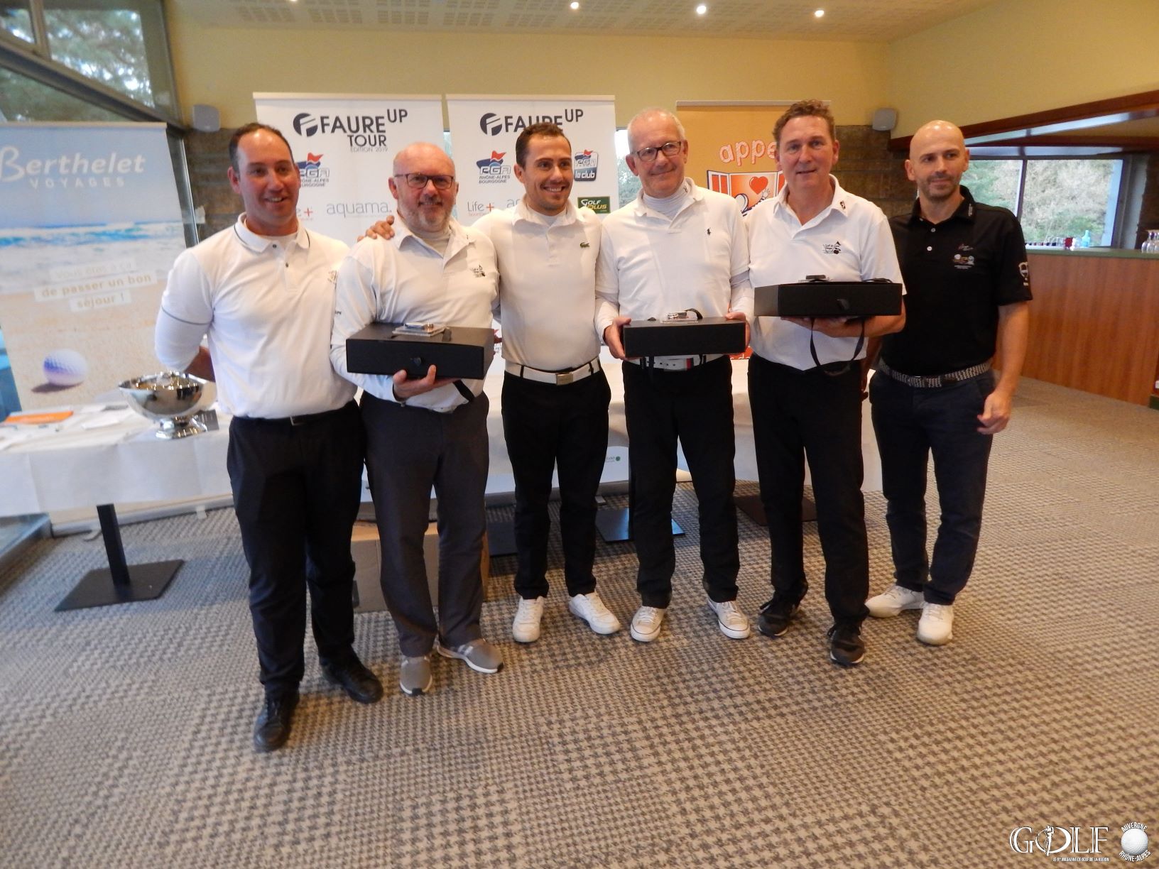 Avec toutes les averses qui se sont abattues sur le Lyonnais ces jours derniers, on craignait le pire. Mais non seulement il n’y a pas eu d’annulation mais le Pro-Am de clôture du Faure UP Tour – PGA R.A.B programmé ce vendredi 8 novembre au G.C Lyon a bénéficié d‘un appréciable soleil automnal. Tant mieux pour les 28 équipes engagées (112 joueurs) sur les Brocards, un record de participation égalé en cette 5è édition qui démontre à la fois le dynamisme de la PGA Rhône-Alpes – Bourgogne conduite par Fabrice Veiga (GCL) tout en récompensant aussi les efforts de Faure Up, la société présidée par Serge Geneau.