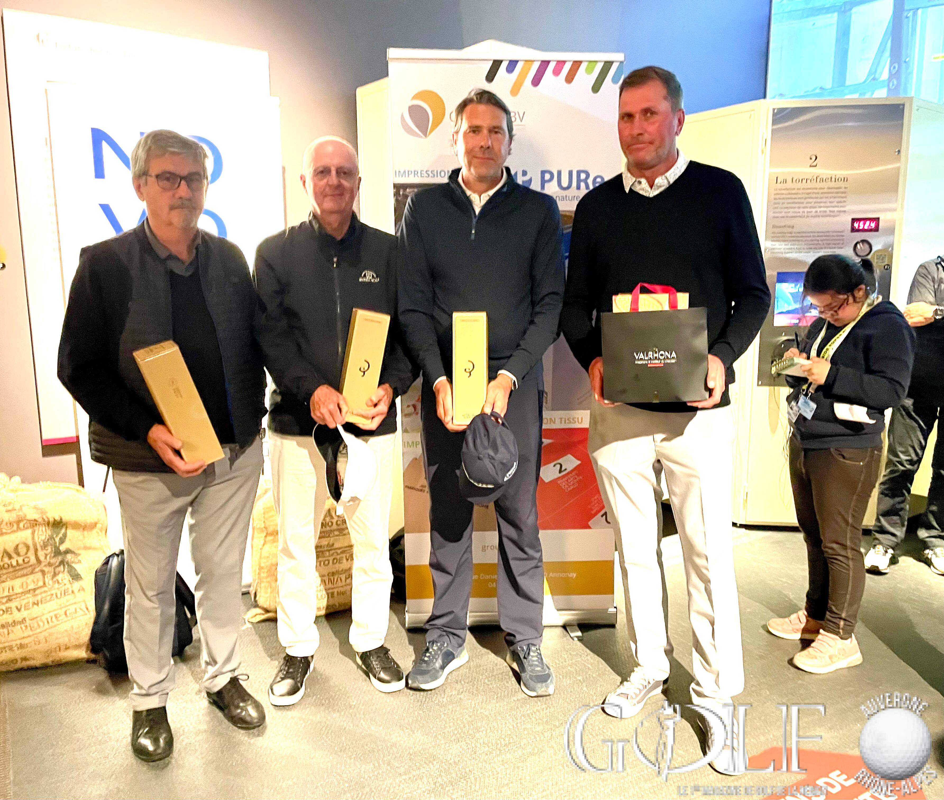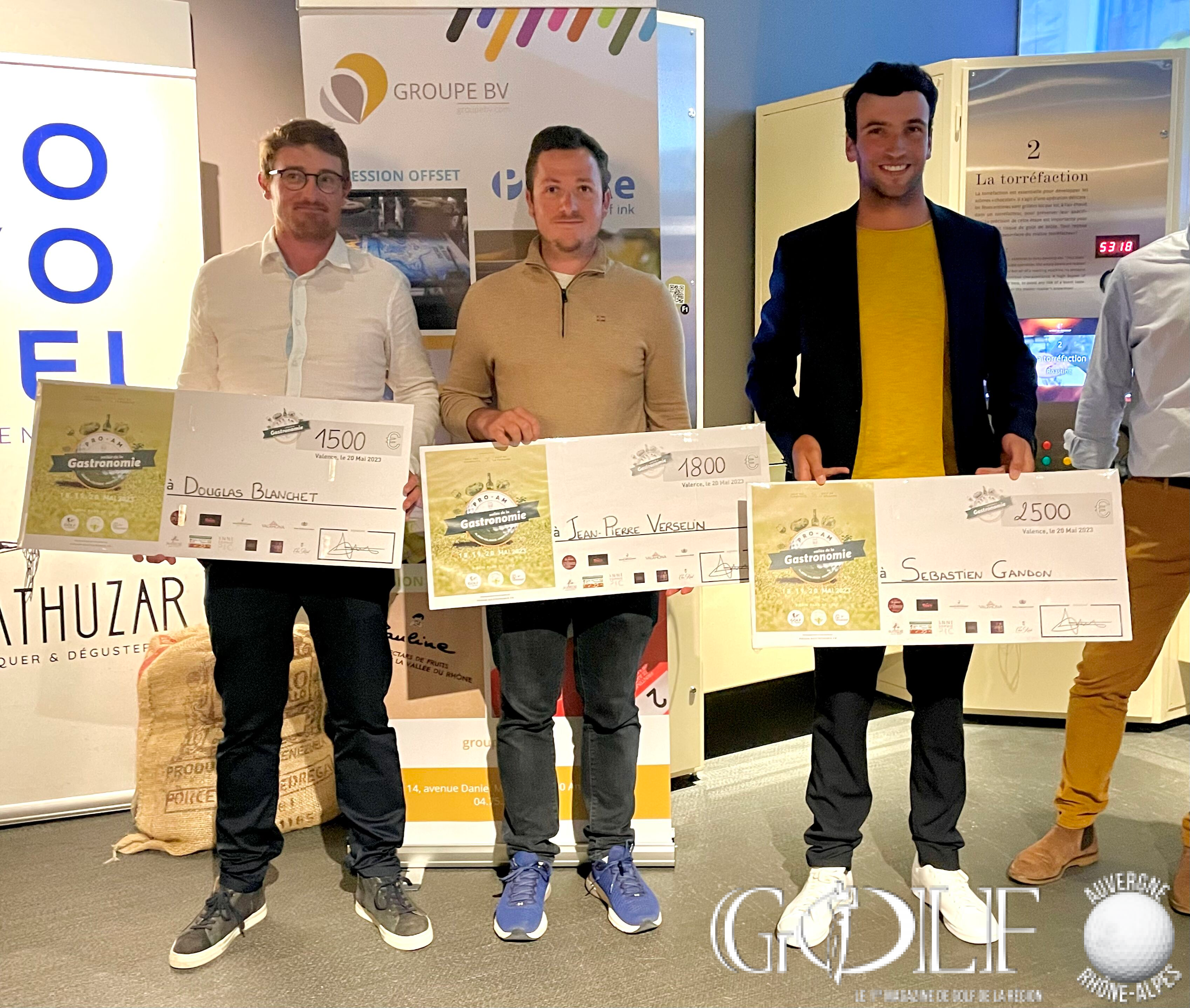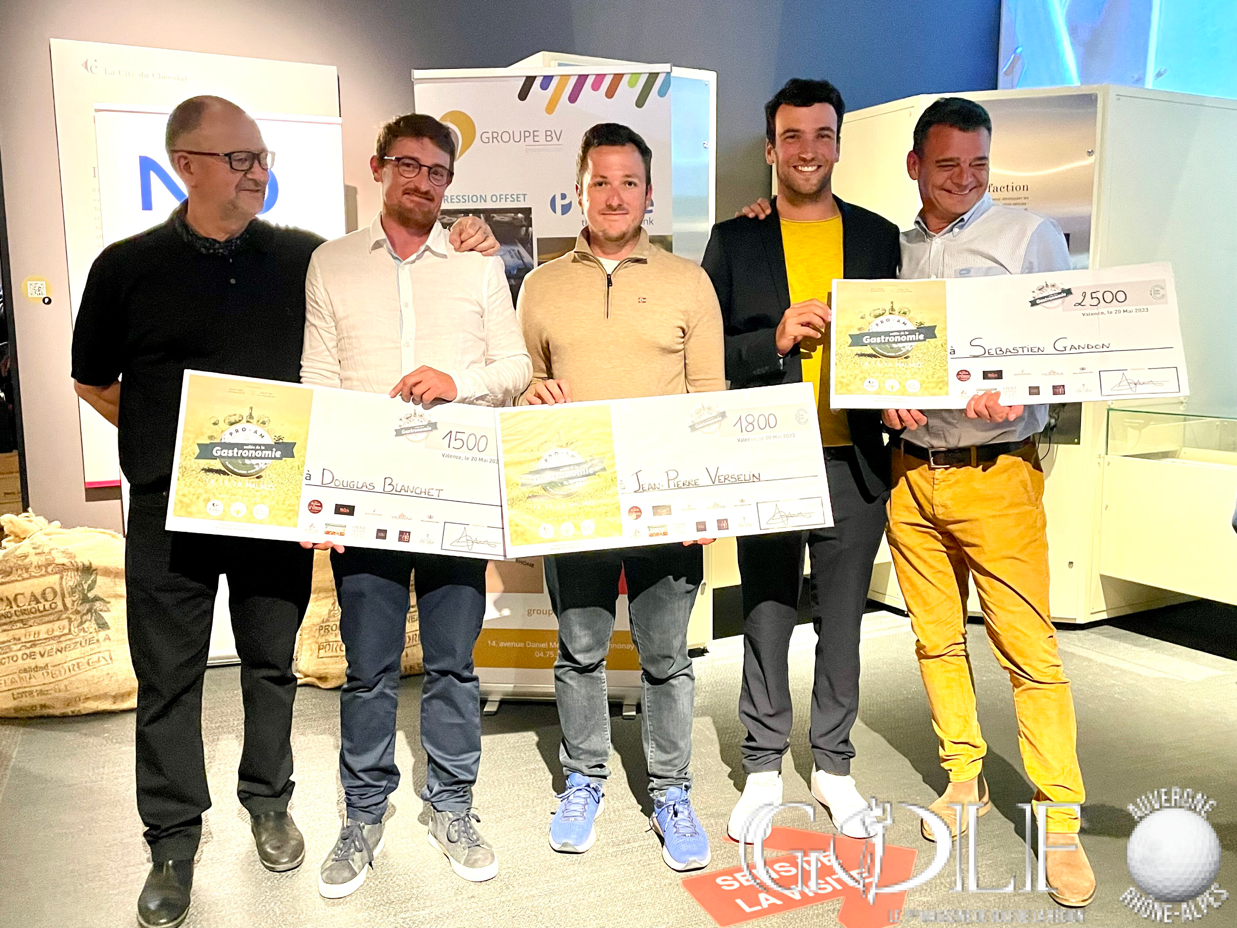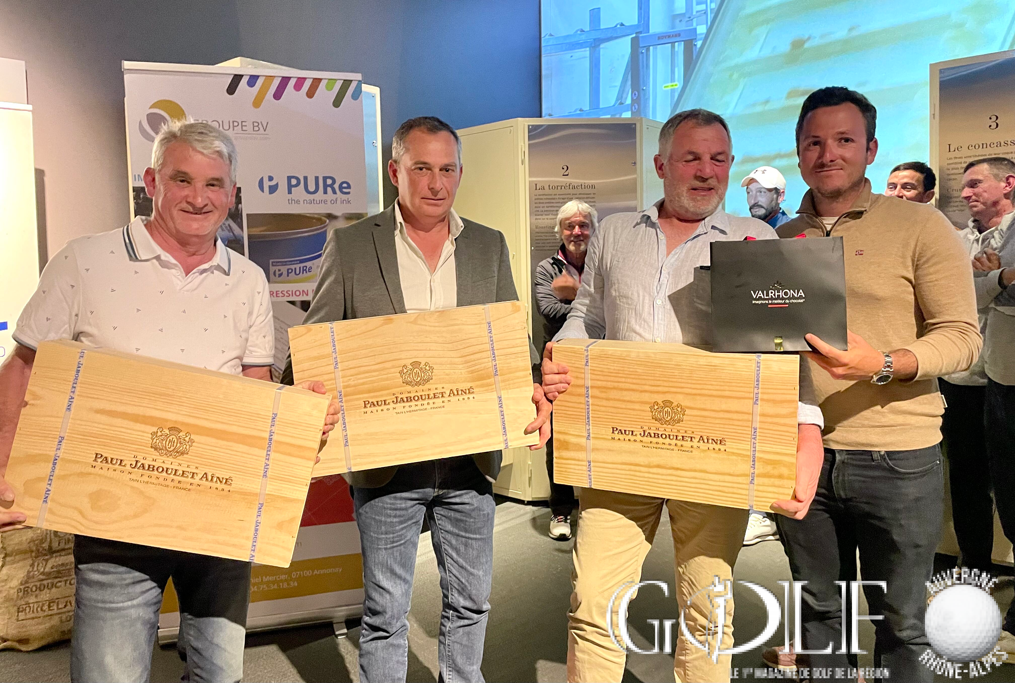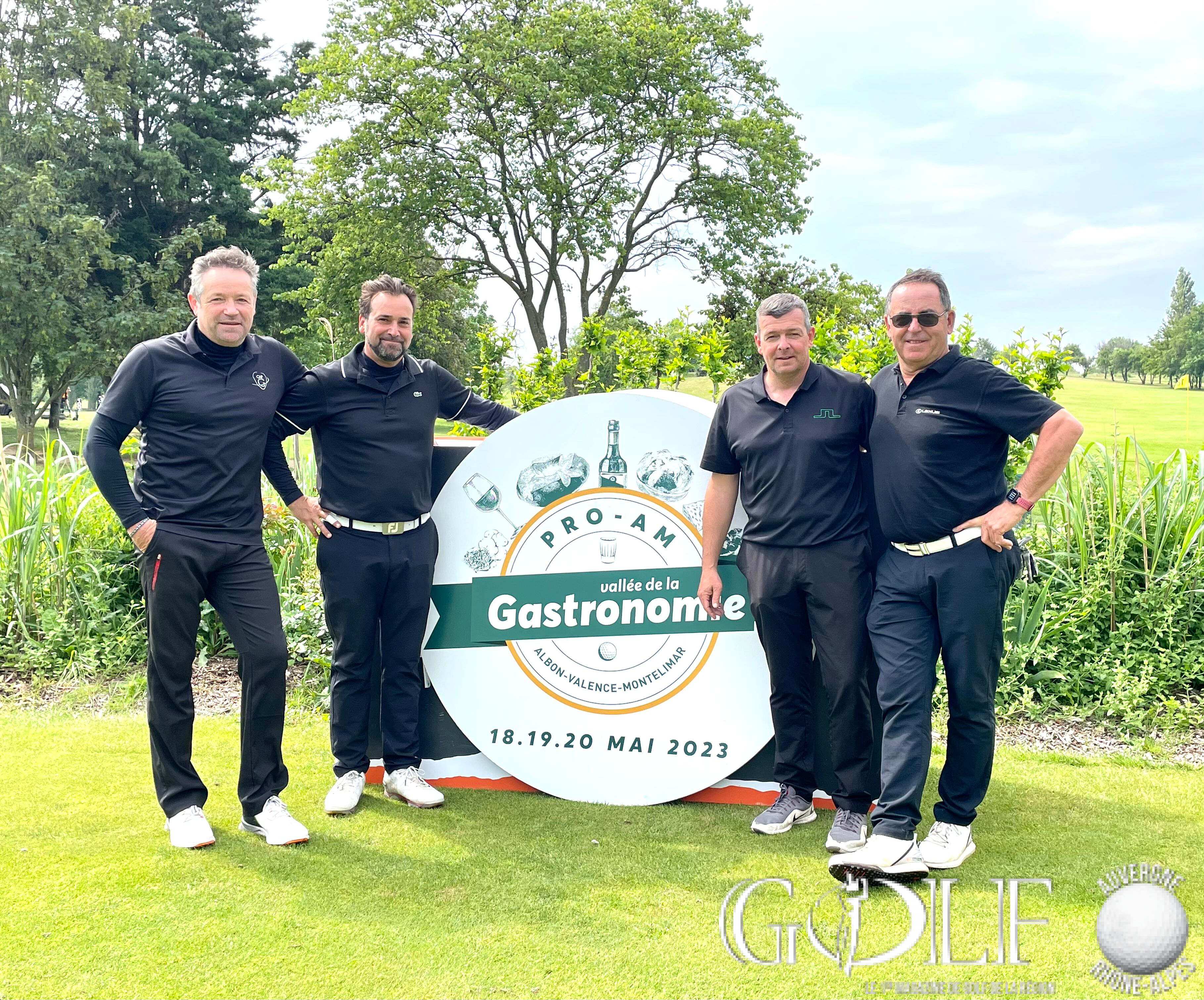 La troisième édition du Pro-Am de la Vallée de la Gastronomie a réuni 22 équipes (1 Pro et 3 amateurs) le week-end de l’ascension sur les golfs d’Albon, la Valdaine et Les Chanalets. Trois jours de compétition délicieux qui ont fait l’unanimité auprès des formations engagées, rythmés par de belles découvertes gustatives sur les parcours, de la convivialité et de la générosité sans oublier l’imposante remise des prix programmée à la Cité du Chocolat Valrhona à Tain-l’Hermitage qui récompensa en brut l’équipage emmené par Dimitri Darnaud (Chanalets) à 12 longueurs devant l’équipe iséroise de Damien Cazes. Mathieu Prost et ses amateurs jurassiens prennent la troisième place. Le net primera la team drivée par Jean Pierre Verselin (Chanalets).