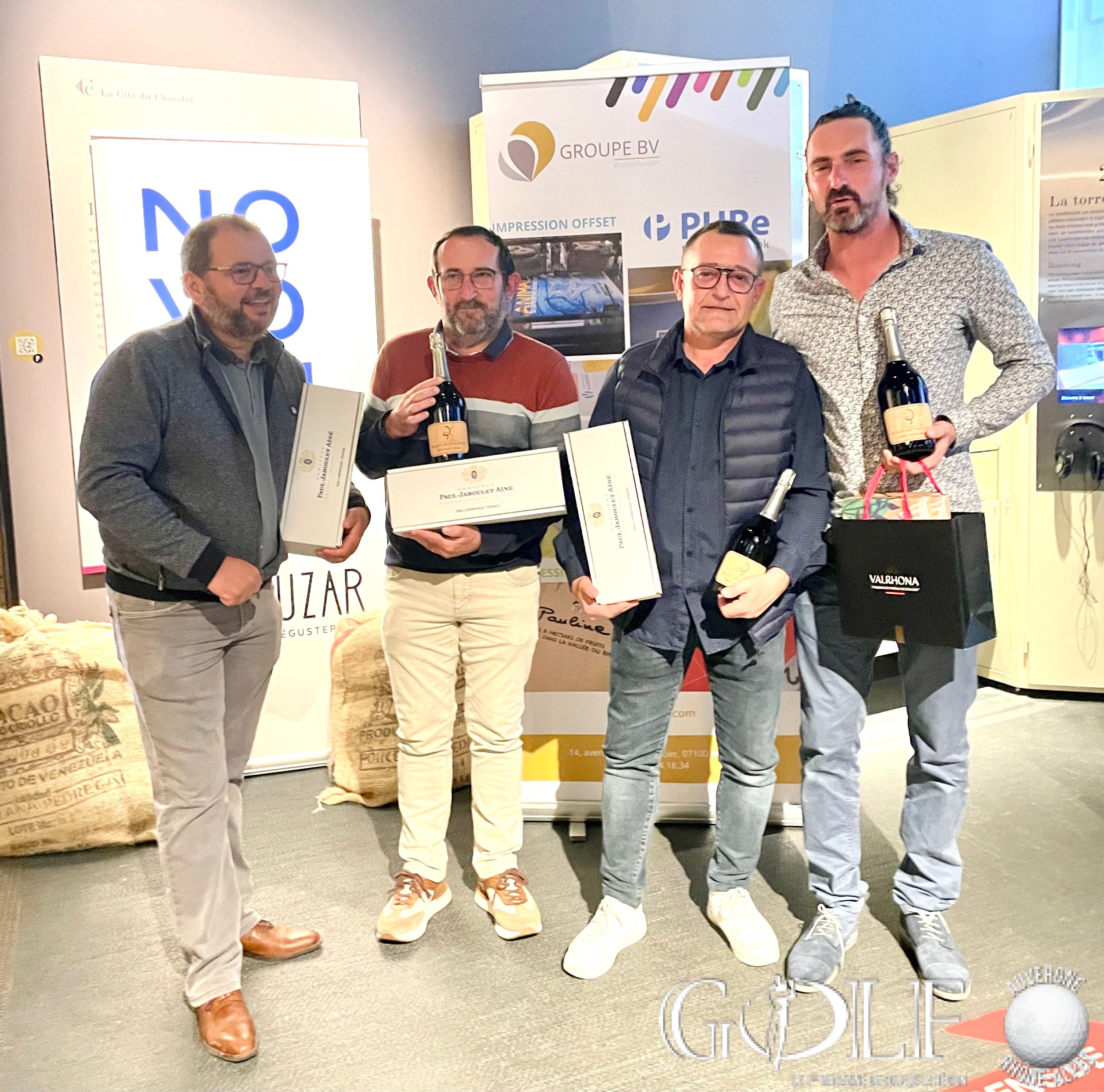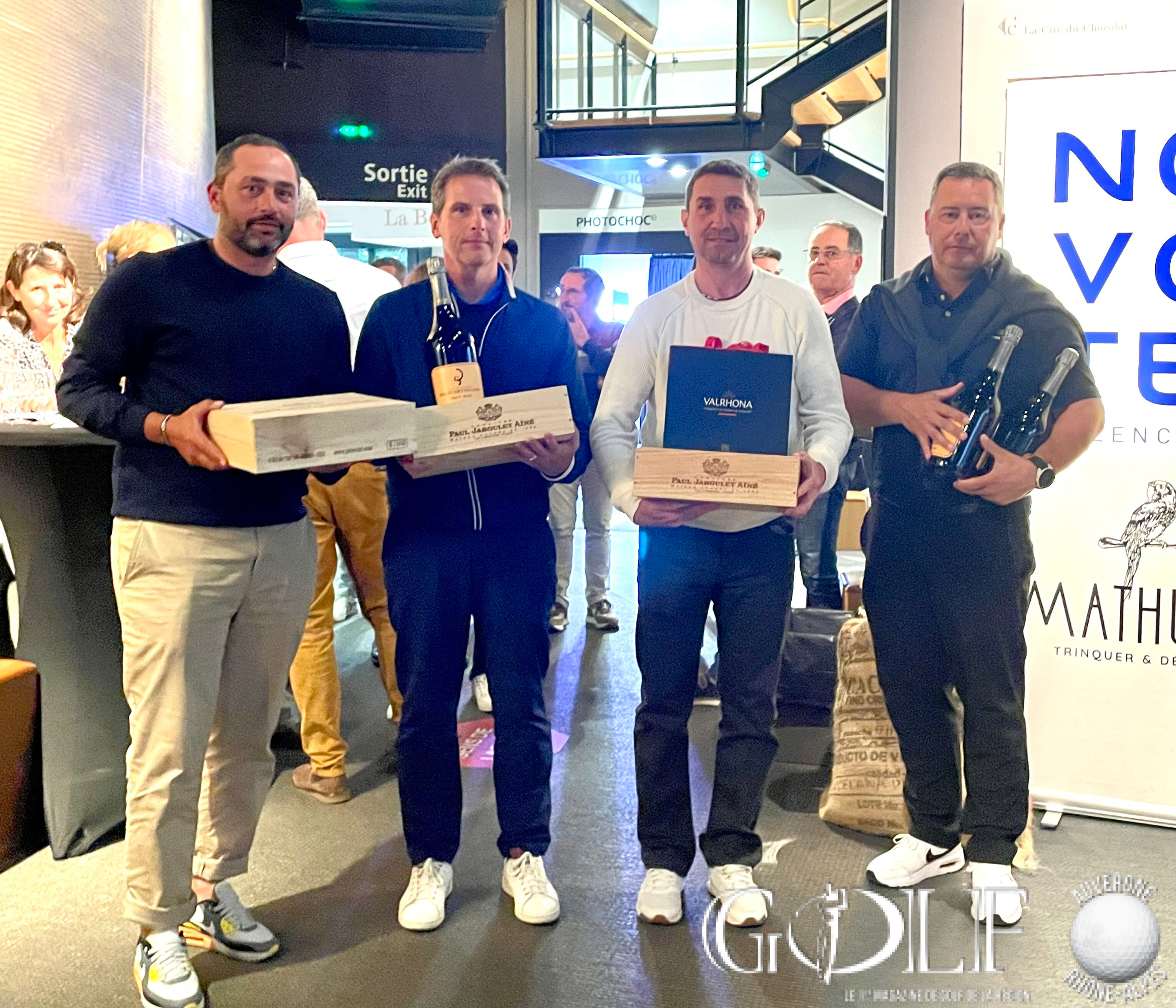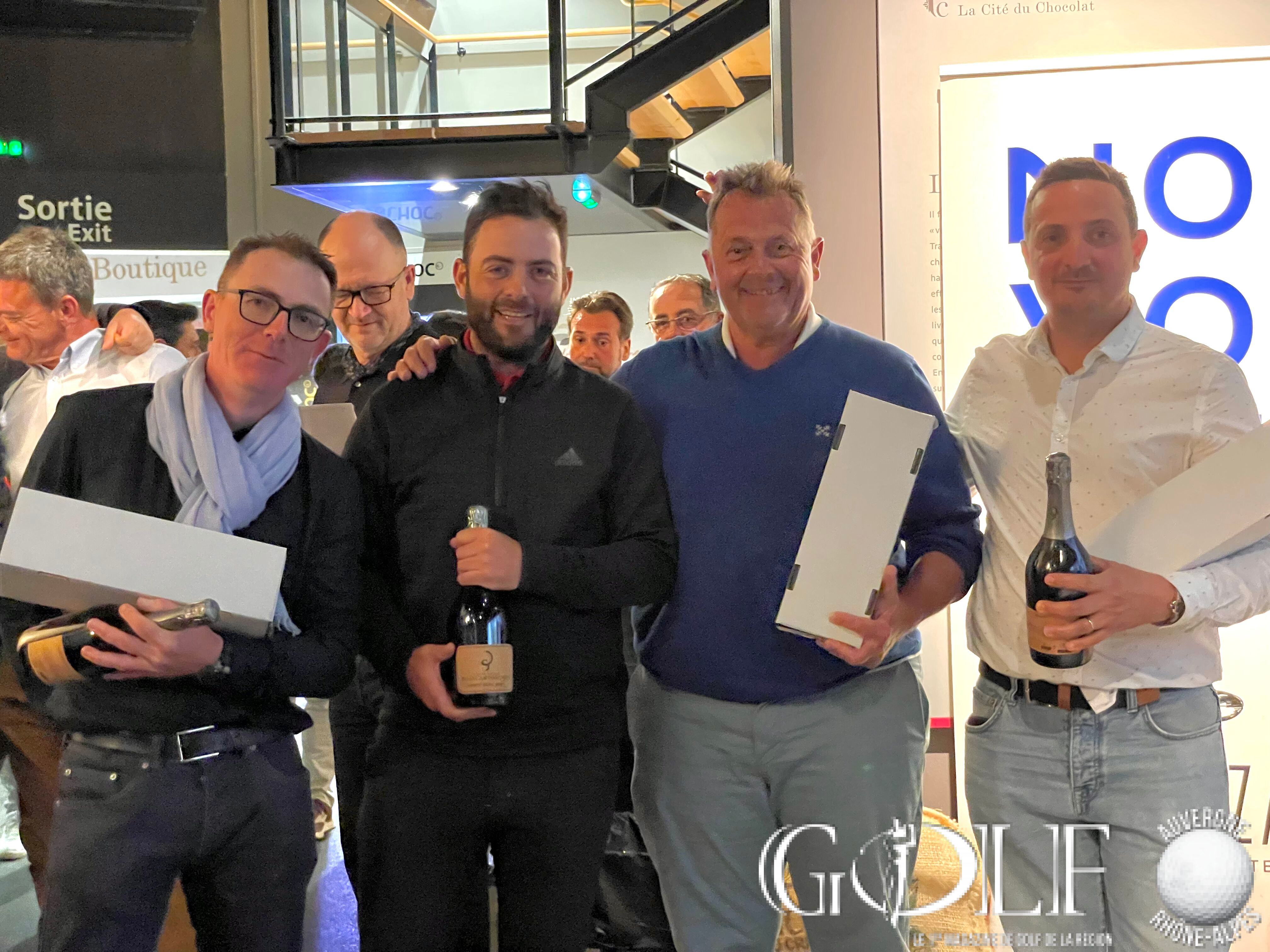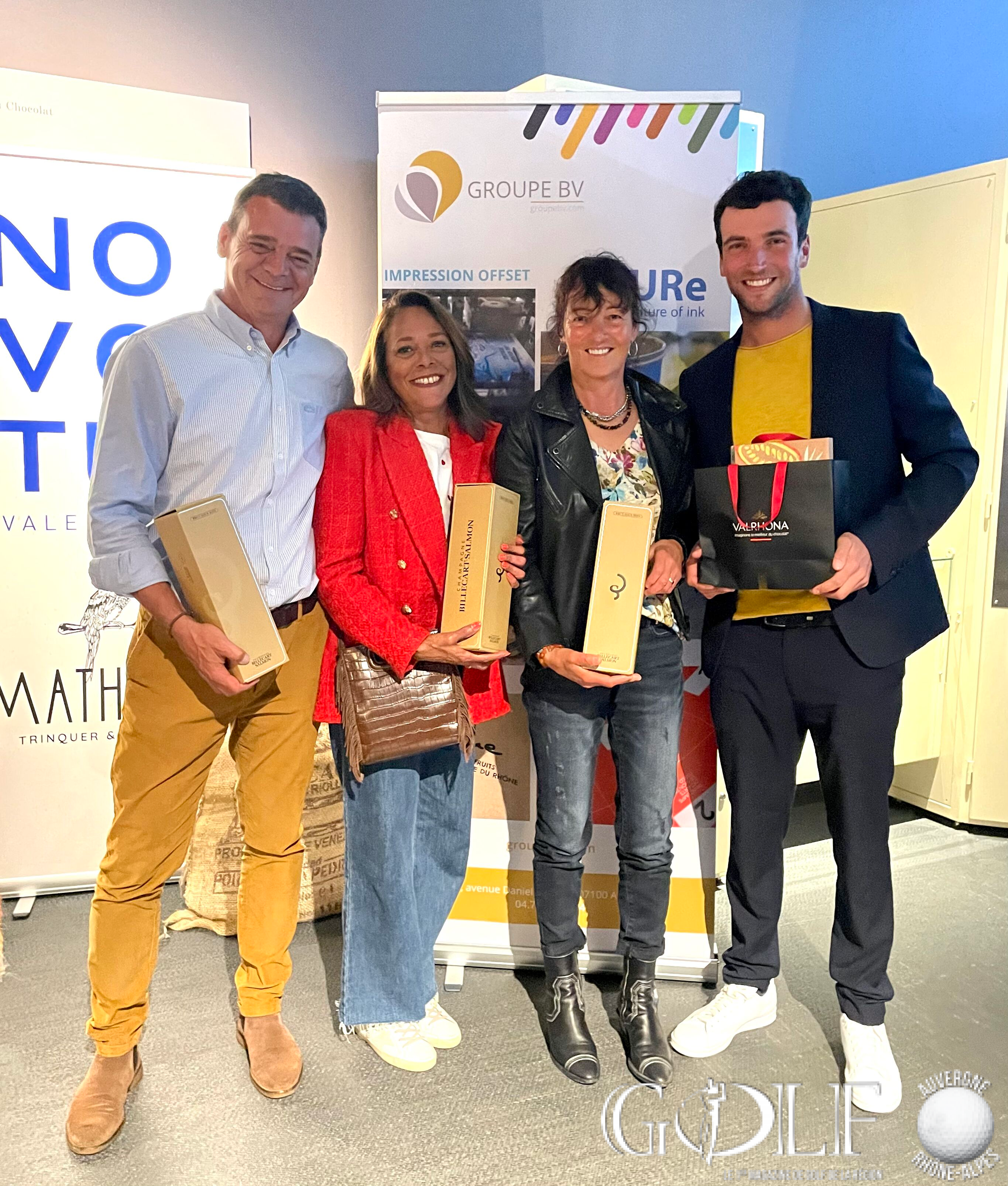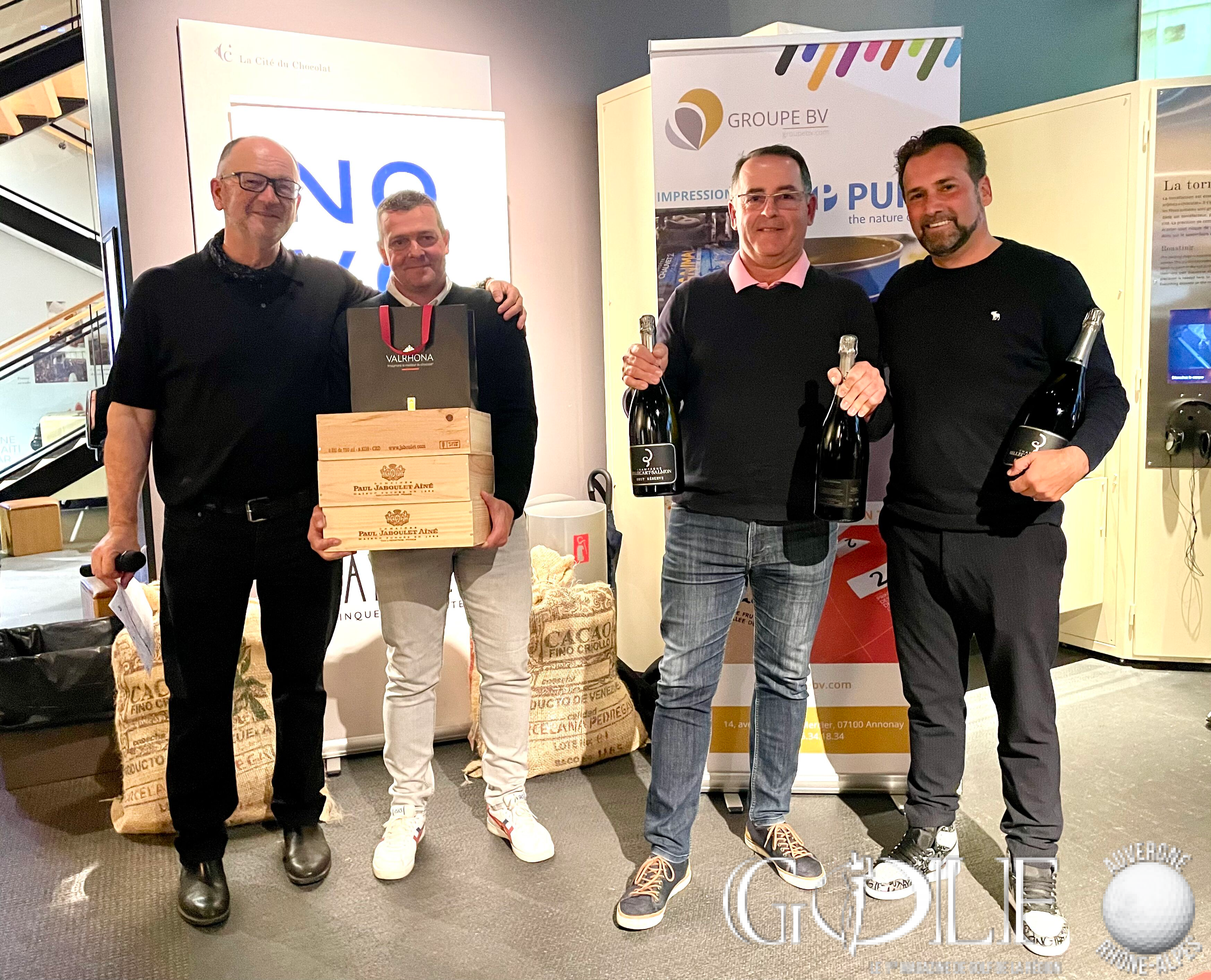 La troisième édition du Pro-Am de la Vallée de la Gastronomie a réuni 22 équipes (1 Pro et 3 amateurs) le week-end de l’ascension sur les golfs d’Albon, la Valdaine et Les Chanalets. Trois jours de compétition délicieux qui ont fait l’unanimité auprès des formations engagées, rythmés par de belles découvertes gustatives sur les parcours, de la convivialité et de la générosité sans oublier l’imposante remise des prix programmée à la Cité du Chocolat Valrhona à Tain-l’Hermitage qui récompensa en brut l’équipage emmené par Dimitri Darnaud (Chanalets) à 12 longueurs devant l’équipe iséroise de Damien Cazes. Mathieu Prost et ses amateurs jurassiens prennent la troisième place. Le net primera la team drivée par Jean Pierre Verselin (Chanalets).