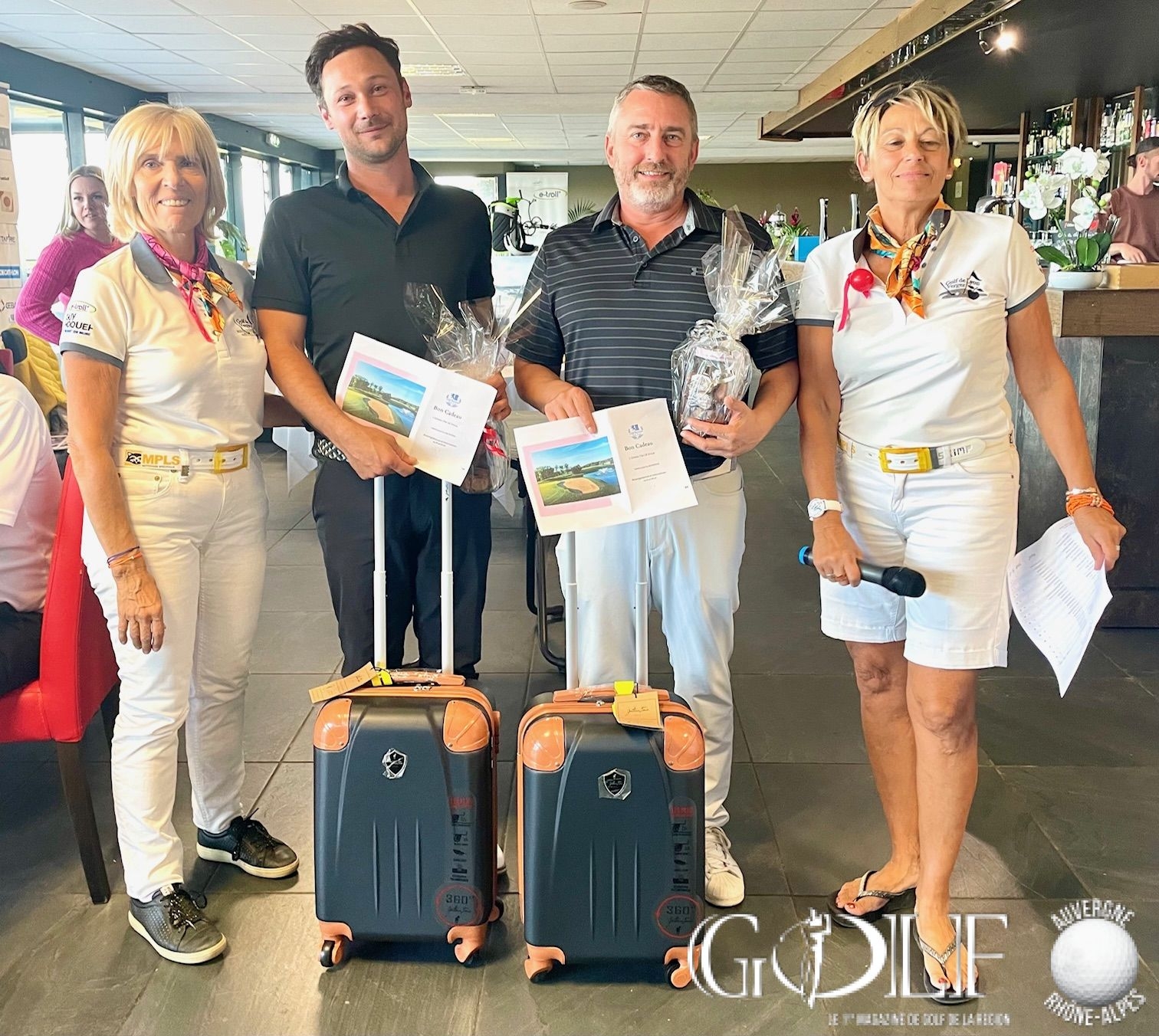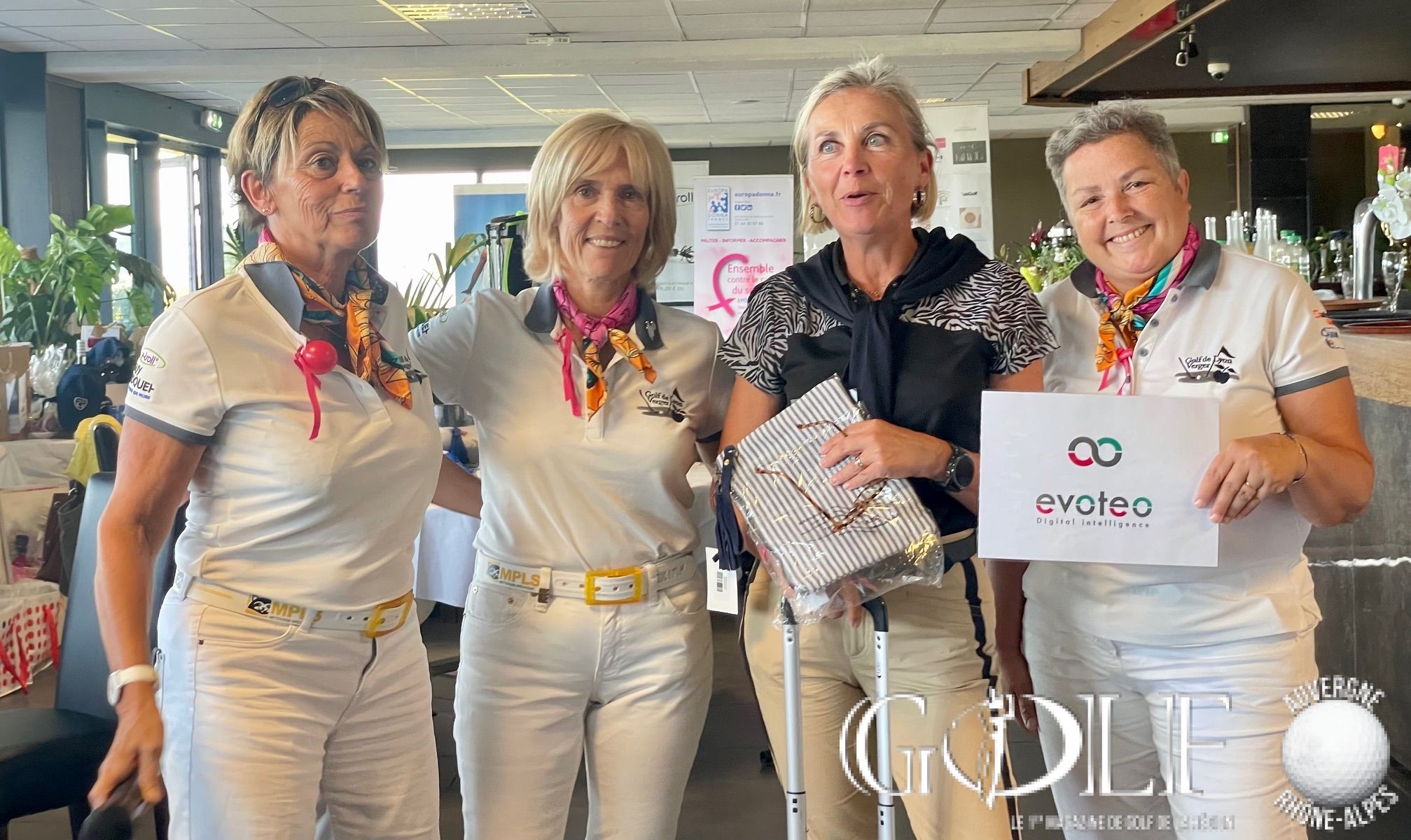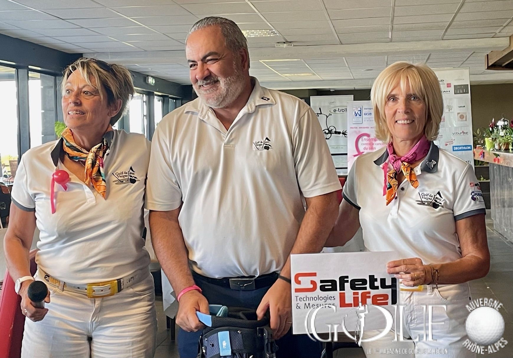 C’est un « dimanche caritatif » inédit placé sous le signe de la générosité et du partage qui a réuni ce 8 octobre une centaine de golfeurs pour un scramble à deux sur l’impeccable parcours ozonnais. Organisée par l’association « Golf Par 3 » chère à Sylvie Clutier Noris, Sandrine Bayle et Pascale Meydieu, – trois amies passionnées de golf et membres du club – cette deuxième édition a été synonyme d’exploit. Petit café et gifts d’accueil, ravitaillement, animation au 15 par l’association Europadonna*…. les compétiteurs ont été chouchoutés par les bienveillantes instigatrices de l’évènement tout au long de cette journée. Une organisation « remarquable, du jamais vu ! » soulignera d’ailleurs un membre d’un club lyonnais voisin, époustouflé. Et puis, avant le déjeuner et en prélude de la gargantuesque remise des prix qui allait récompenser 58 personnes, sans oublier les tirages au sort et la tombola gastronomique, deux chèques de 10 555,50 euros chacun ont été remis aux associations Europadonna et Docteur Clown. Soit un montant exceptionnel de 21 111 euros de dons et droits de jeu entièrement redistribués. Bref, un Noël en automne offert par notre trio au grand cœur, qui méritait bien une salve d’applaudissements pour le closing de cette belle journée, en attendant déjà avec impatience 2024.