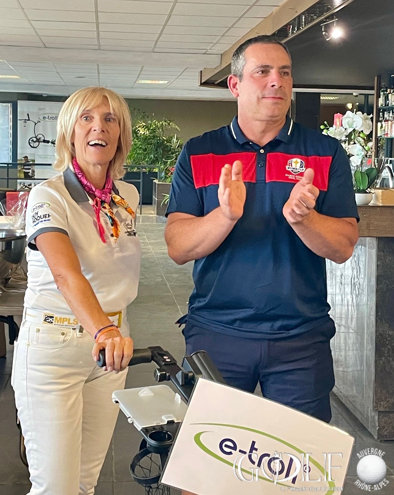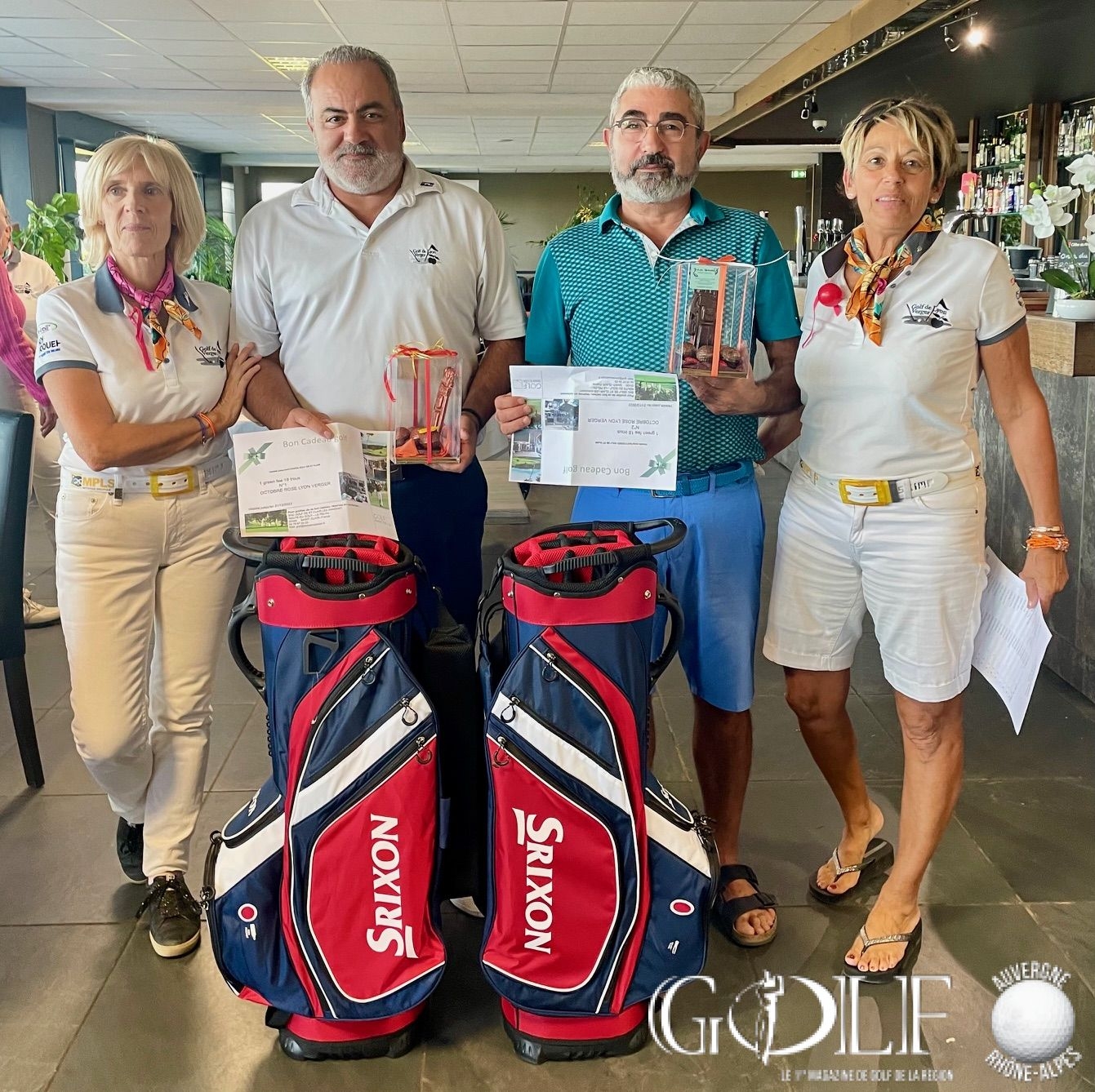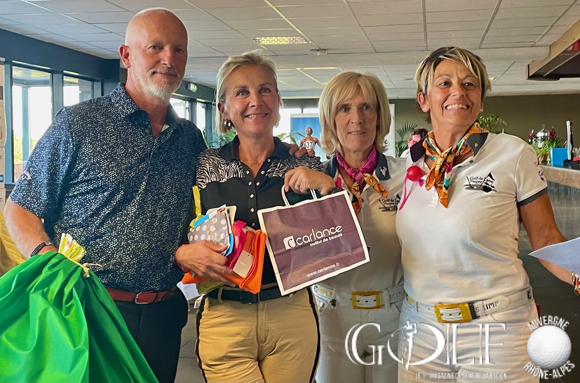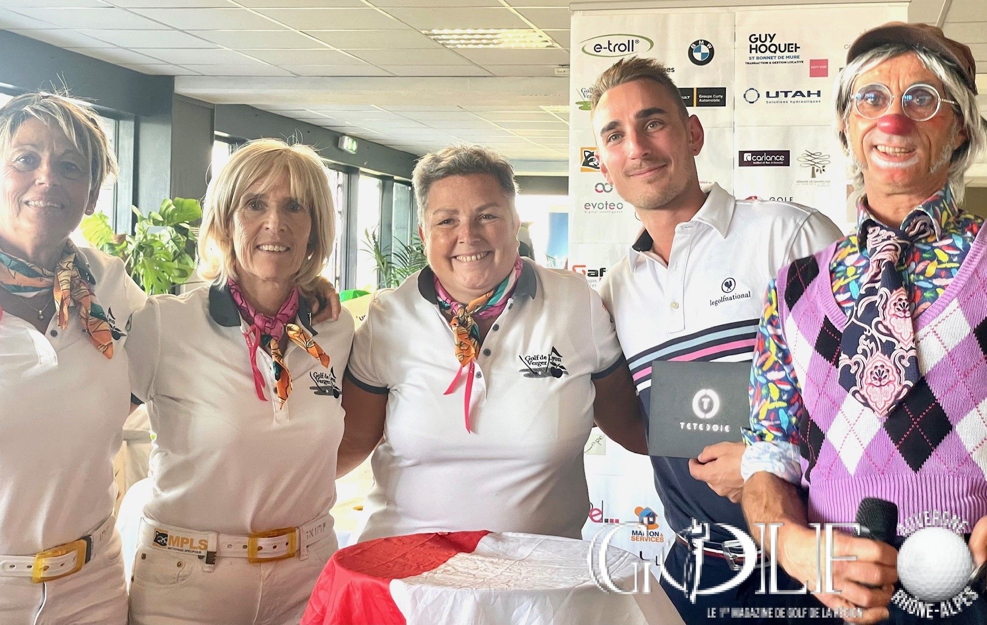 C’est un « dimanche caritatif » inédit placé sous le signe de la générosité et du partage qui a réuni ce 8 octobre une centaine de golfeurs pour un scramble à deux sur l’impeccable parcours ozonnais. Organisée par l’association « Golf Par 3 » chère à Sylvie Clutier Noris, Sandrine Bayle et Pascale Meydieu, – trois amies passionnées de golf et membres du club – cette deuxième édition a été synonyme d’exploit. Petit café et gifts d’accueil, ravitaillement, animation au 15 par l’association Europadonna*…. les compétiteurs ont été chouchoutés par les bienveillantes instigatrices de l’évènement tout au long de cette journée. Une organisation « remarquable, du jamais vu ! » soulignera d’ailleurs un membre d’un club lyonnais voisin, époustouflé. Et puis, avant le déjeuner et en prélude de la gargantuesque remise des prix qui allait récompenser 58 personnes, sans oublier les tirages au sort et la tombola gastronomique, deux chèques de 10 555,50 euros chacun ont été remis aux associations Europadonna et Docteur Clown. Soit un montant exceptionnel de 21 111 euros de dons et droits de jeu entièrement redistribués. Bref, un Noël en automne offert par notre trio au grand cœur, qui méritait bien une salve d’applaudissements pour le closing de cette belle journée, en attendant déjà avec impatience 2024.