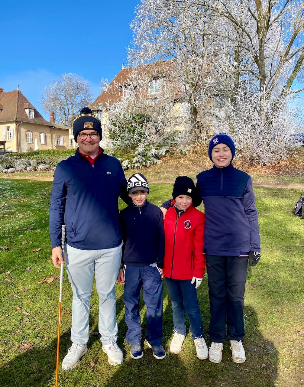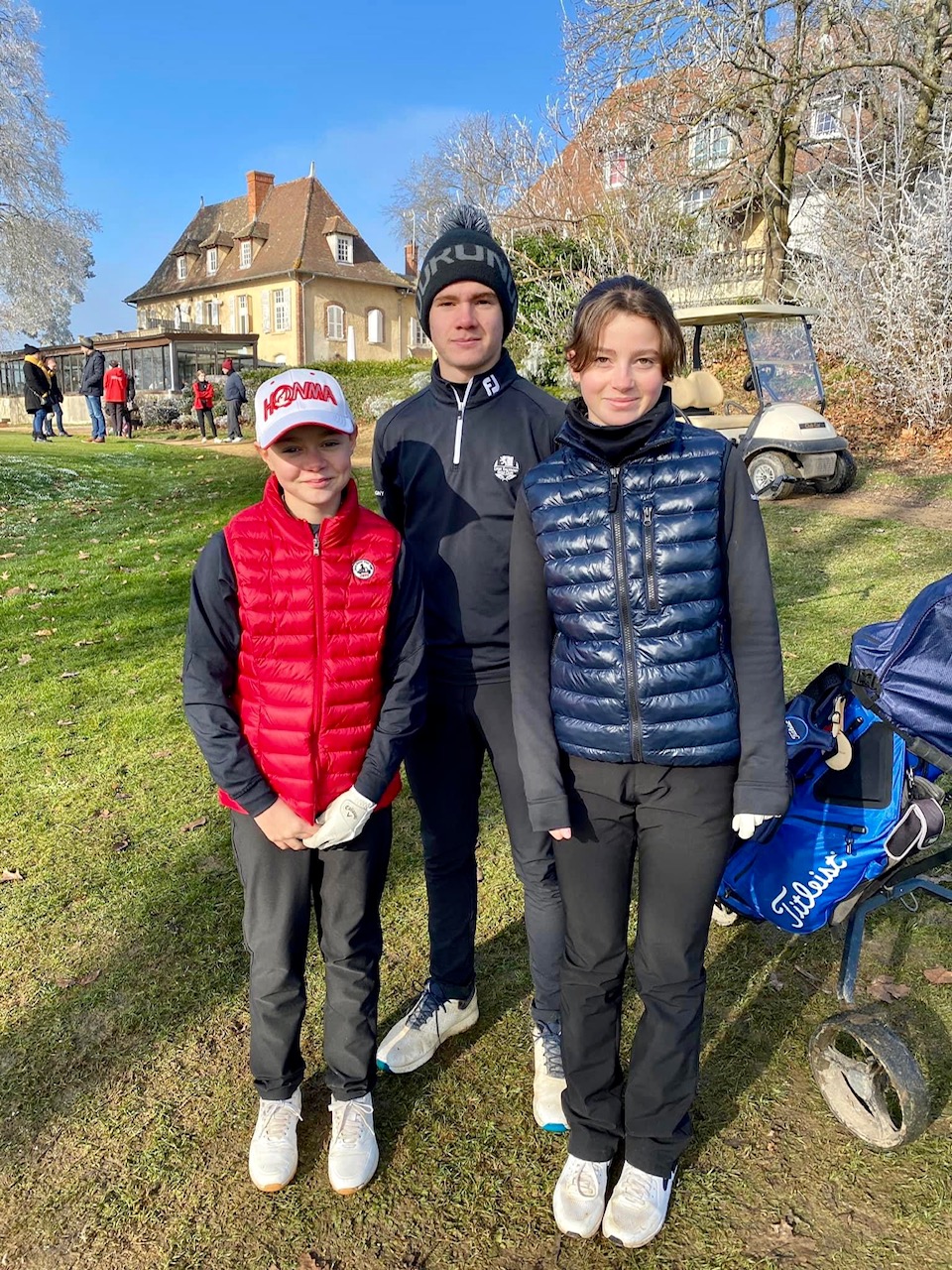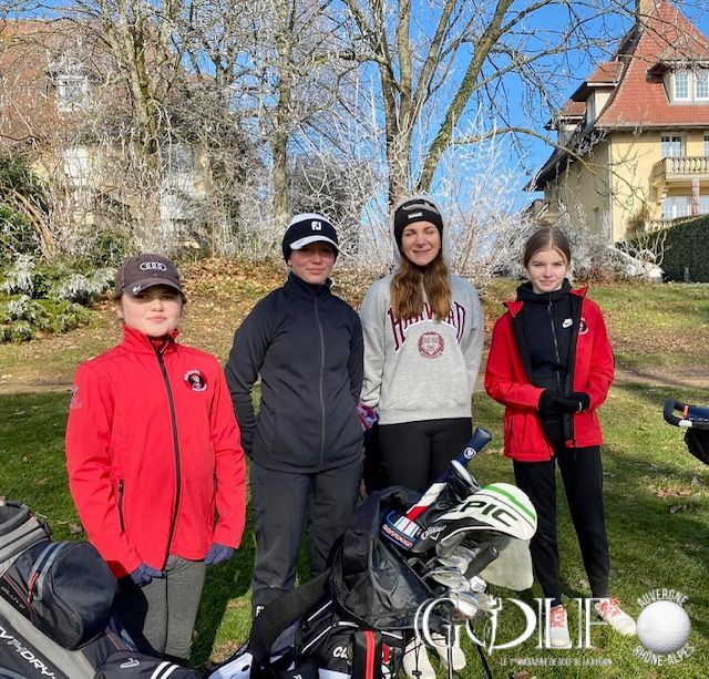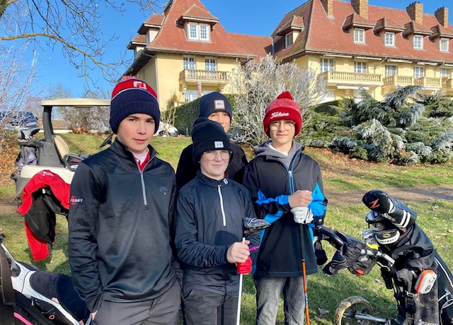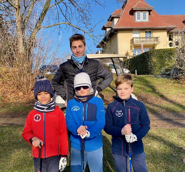 Au UGolf Mionnay, « le sportif est au cœur des valeurs de tous » et la fête de la Red Gones Académie l’a encore démontré. Ce dimanche 16 janvier, 70 élèves se sont retrouvés pour ce premier rendez-vous de l’année. Pendant que les plus jeunes s’appliquaient au passage des drapeaux, orchestré par la dynamique présidente de l’AS Florence Verdier, une quarantaine de «graines de champions » (28 garçons et 10 filles) s’élançaient pour un Sport-Am en scramble à trois ou quatre sur 9 trous. Les dix équipes en lice, composées d’un joueur de la team « Elite », un de la team « Intensif », et drivées par un élève du Renaud Gris Institut allaient batailler pendant près de quatre heures, sur des greens gelés, dans le froid glacial. « Compliqué mais trop cool ! » résumera Oscar, le sourire en bandoulière, avant de rentrer au club-house.