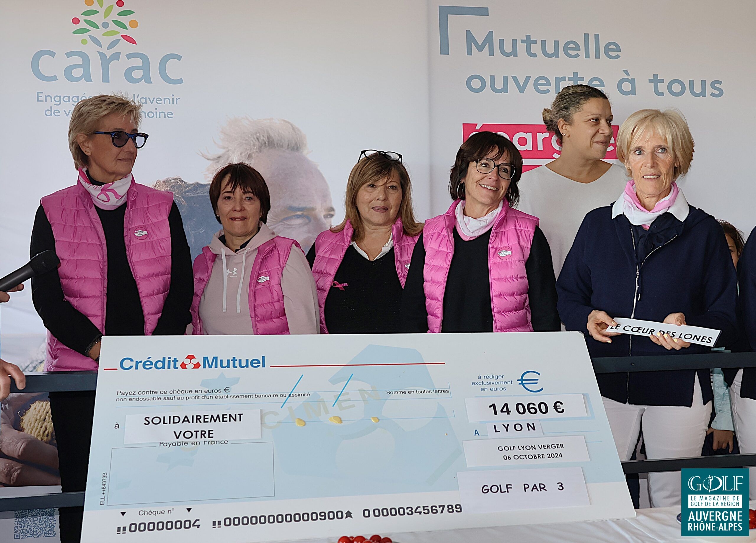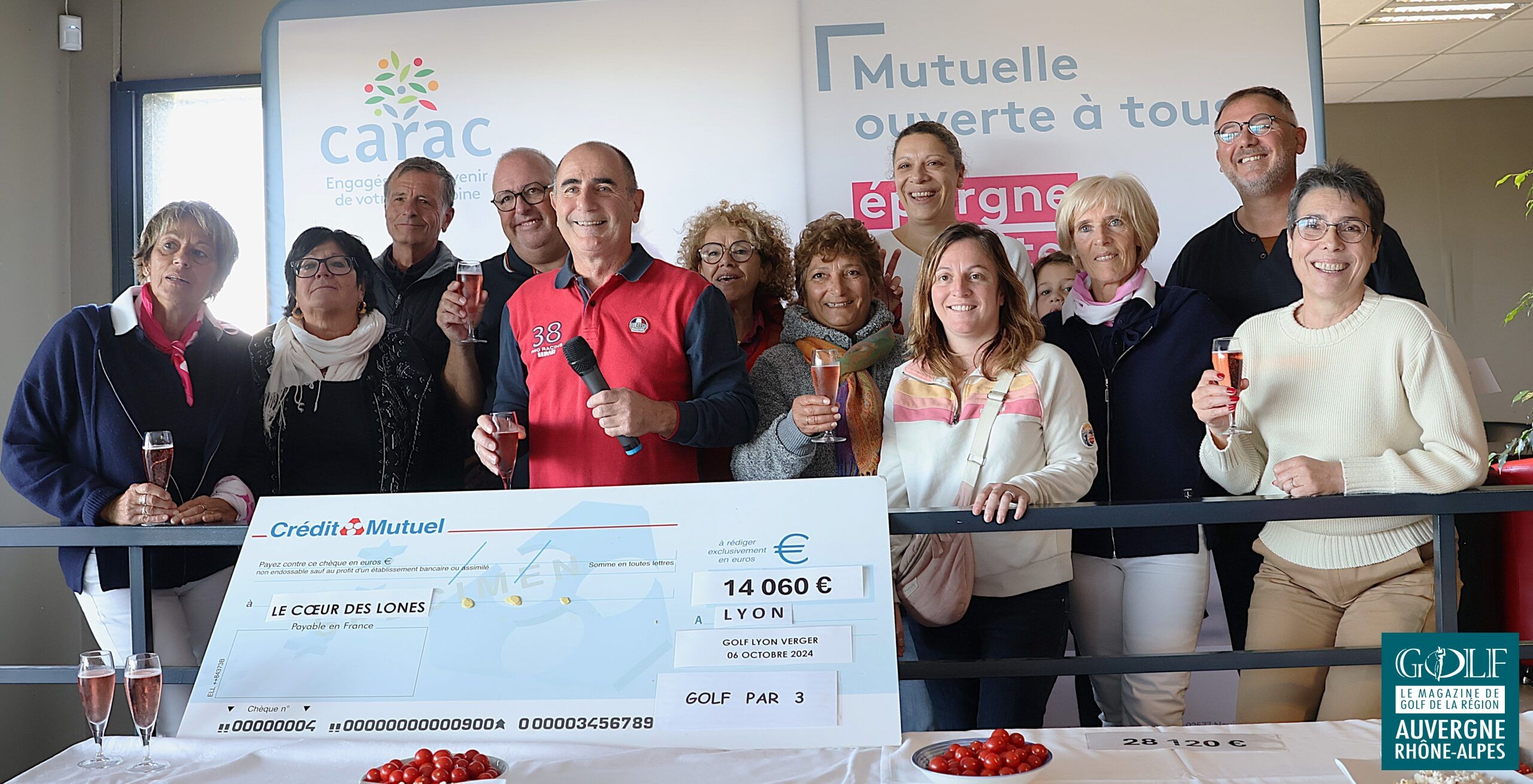 Petit café et gifts d’accueil, chocolat chaud sur le parcours, animations au 9 par l’association Solidairement Vôtre*, et au 13 par le Cœur des Lônes**, …. les compétiteurs ont été chouchoutés par les bienveillantes instigatrices de l’événement, avec le soutien de fidèles parenaires*** et les équipes du golf . Et, avant le déjeuner, en prélude de la gargantuesque remise des prix qui allait récompenser une soixantaine de personnes, sans oublier les tirages au sort et la tombola gastronomique, deux chèques de 14 060 euros chacun ont été remis aux deux associations invitées. Soit un montant exceptionnel de 28 120 euros de dons et droits de jeu entièrement redistribués. Époustouflant !